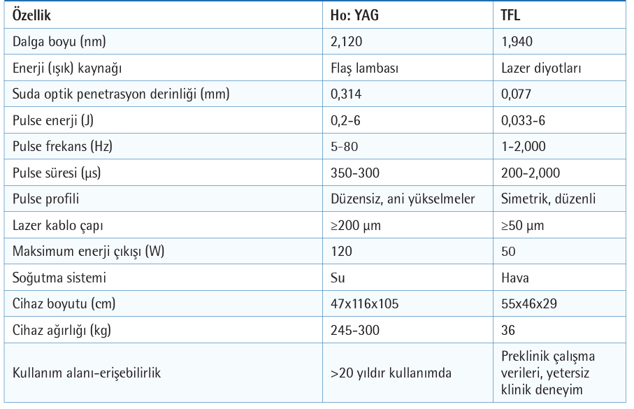 Ho: YAG ve TFL’nin taş kırma açısından özelliklerinin karşılaştırılması