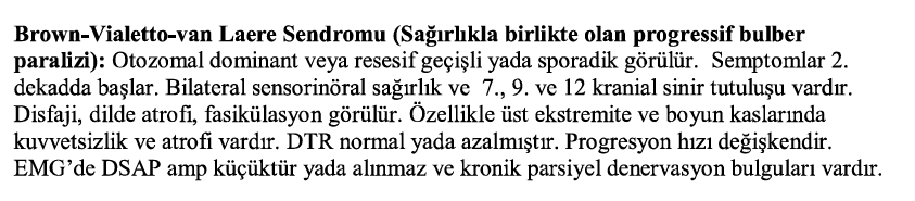 Brown-Vialetto-Van Laere Sendromu= progresif bulber paralizi + sensörinöral sağırlık