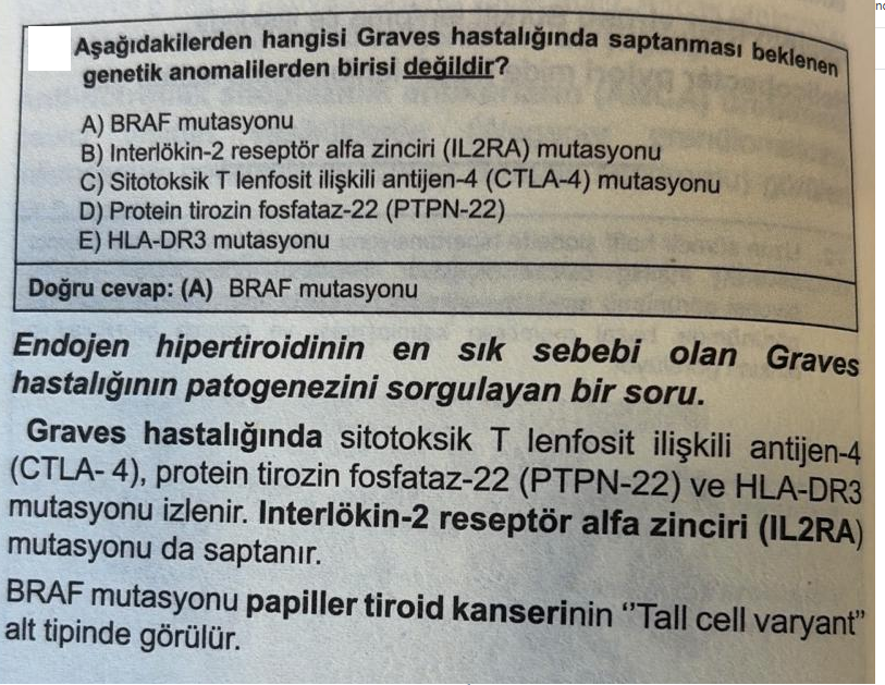 - Papiller tiroid kanseri ile ilişkili olup Graves ile ilişkili DEĞİLdir.