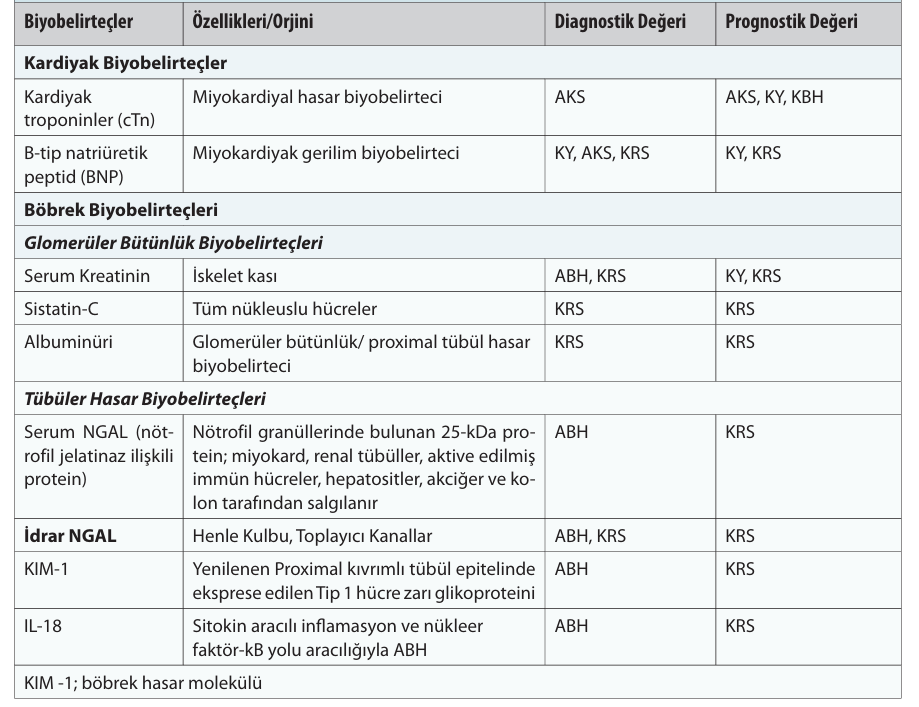 Kardiyo-renal sendrom erken tanısında kullanılan biyobelirteçler