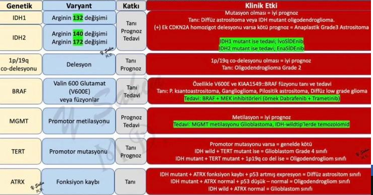 Gliomlarda moleküler/genetik sınıflama (WHO 2021-2024 yaklaşımı)